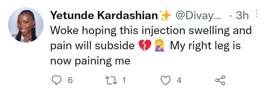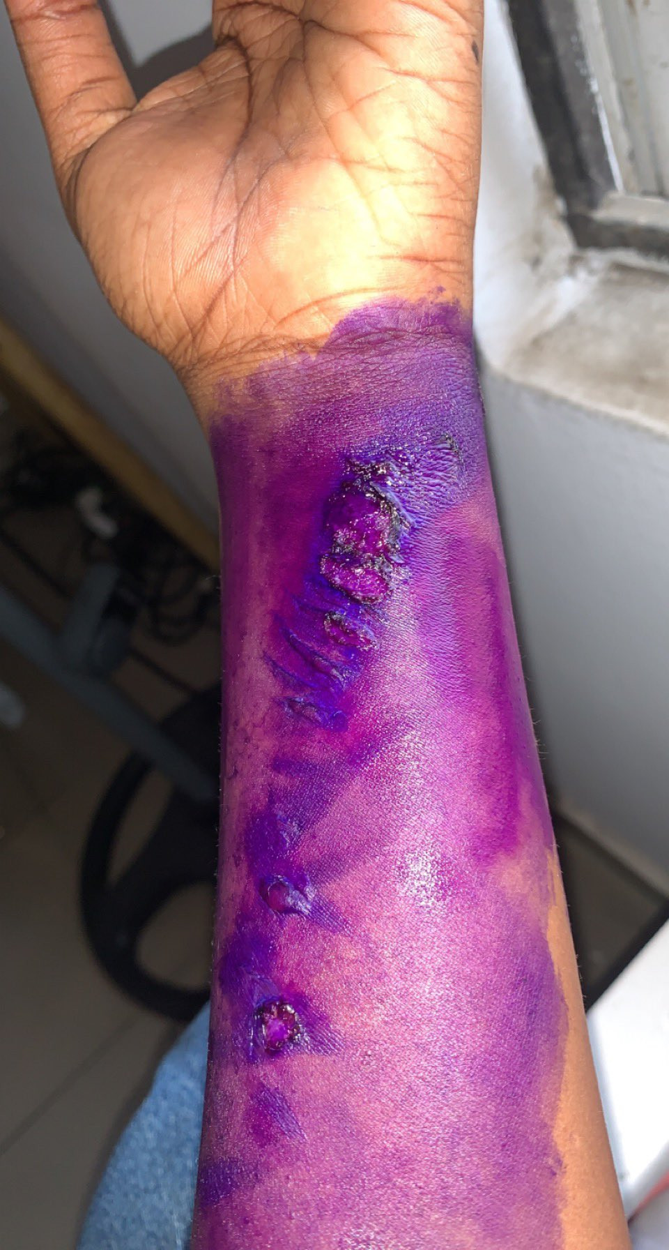 She took to twitter to share photos of the injuries she sustained following the incident.