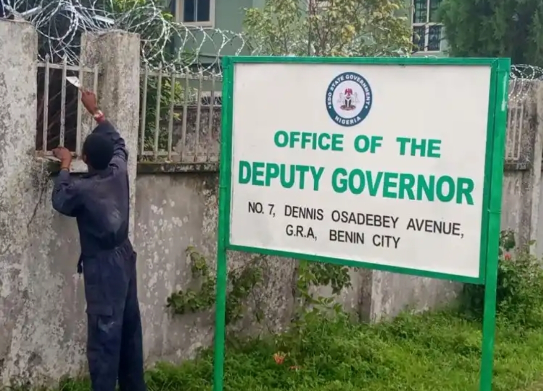 Renovation works are currently ongoing at the abandoned Procurement Office of the Edo State government with a new signboard mounted at the entrance of the building showing ‘Office of the Deputy Governor.’