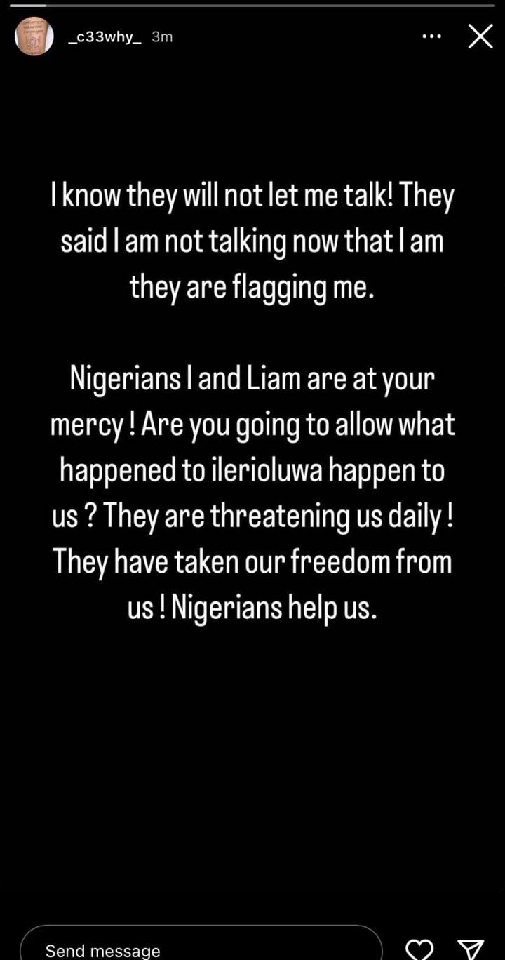 Nigerians I and Liam are at your mercy! Are you going to allow what happened to Ileriouluwa to happen to us? They are threatening us daily! They have taken our freedom from us! Nigerians help us.