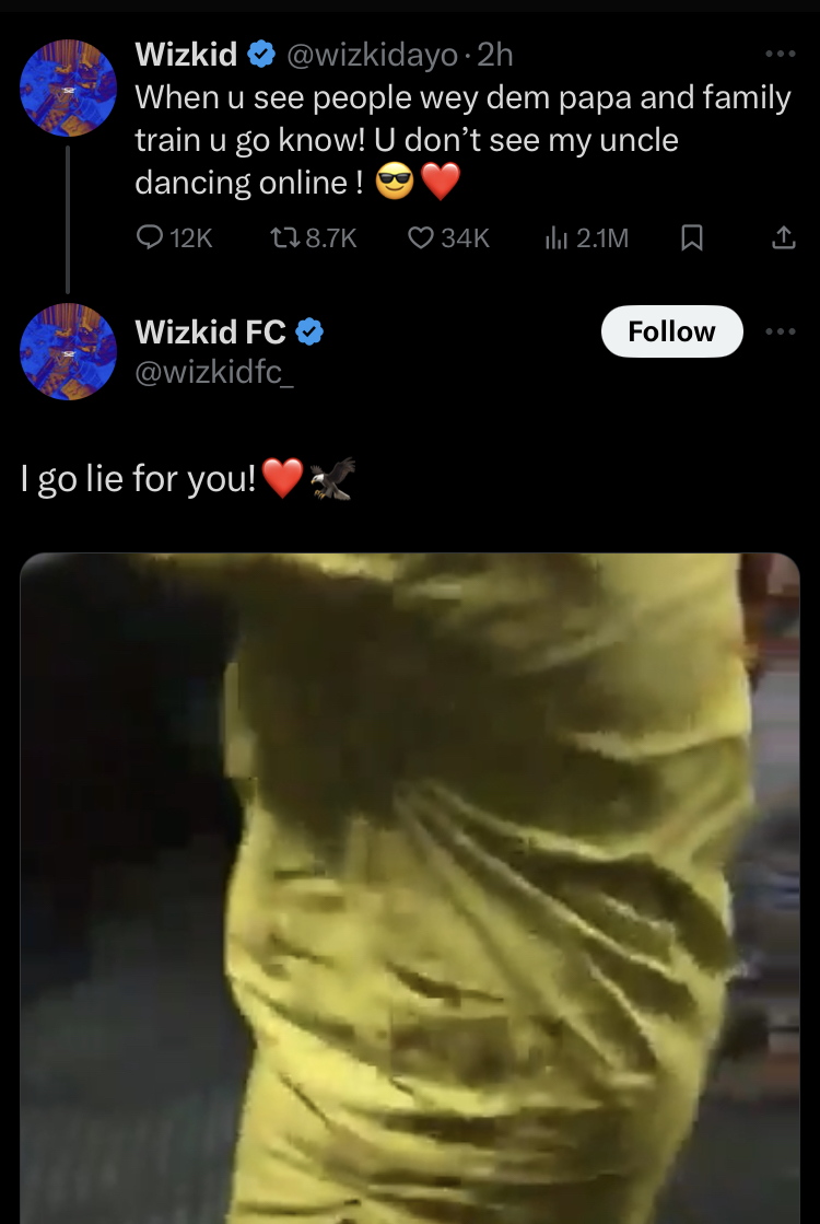 Wizkid posted, “When you see people raised by their family, you can tell! You won’t catch my uncle dancing online!”