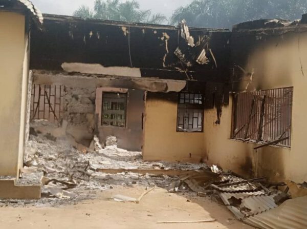 The building, which is located at Ibiono Ibom Local Government Area, was partially razed down on Saturday, by the miscreant barely few hours befor the LG poll.