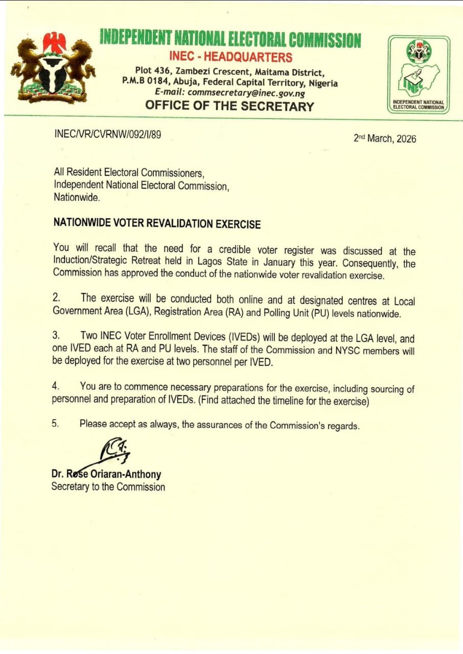 In its official communication, INEC said the exercise is part of efforts to ensure a credible voter register.